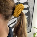 Alors, pourquoi attendre ? Rejoignez la tendance et offre à tes cheveux le traitement VIP qu'ils méritent avec ces chouchous crunchy en nid d'abeille !