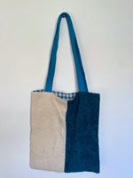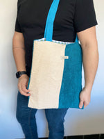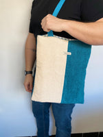 Plonge dans une expérience de confort ultime avec le Tote Bag "Eponge". À l'extérieur, il arbore une texture douce en tissu éponge bicolore, une caresse pour tes sens avec ses teintes apaisantes de blanc cassé et de bleu.