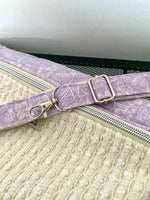 C'est ce même tissu violet pastel que l'on retrouve dans la doublure de la banane ainsi que sur la sangle.