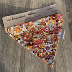 Ajoute une touche rétro et colorée à la garde-robe de ton compagnon à quatre pattes avec ce bandana inspiré des motifs floraux d’antan, ce bandana lumineux aux teintes orangées apportera du style et du peps aux balades de ton chien.