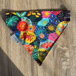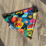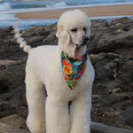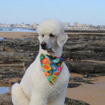 Offre à ton compagnon un look tropical avec ce bandana éclatant aux motifs exotiques ! Avec ses illustrations de jaguars, d’ananas et de feuillages luxuriants, il est parfait pour apporter une touche de couleur et de gaieté à ton chien.